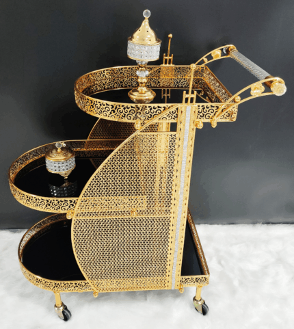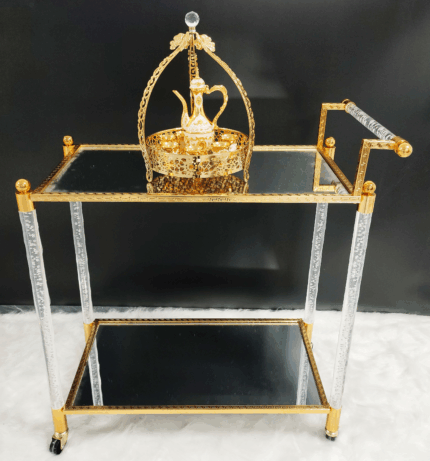 In India, celebrations are more than events—they’re moments woven with love, laughter, and tradition. The Double-Handle Crystal & Iron Serving Trolley (QBY-80228) is crafted to be the centerpiece of these moments: a blend of auspicious design, practical luxury, and golden grandeur that elevates every occasion. Whether you’re serving Diwali sweets, chai to guests, or wedding desserts, this trolley turns ordinary gatherings into unforgettable experiences.