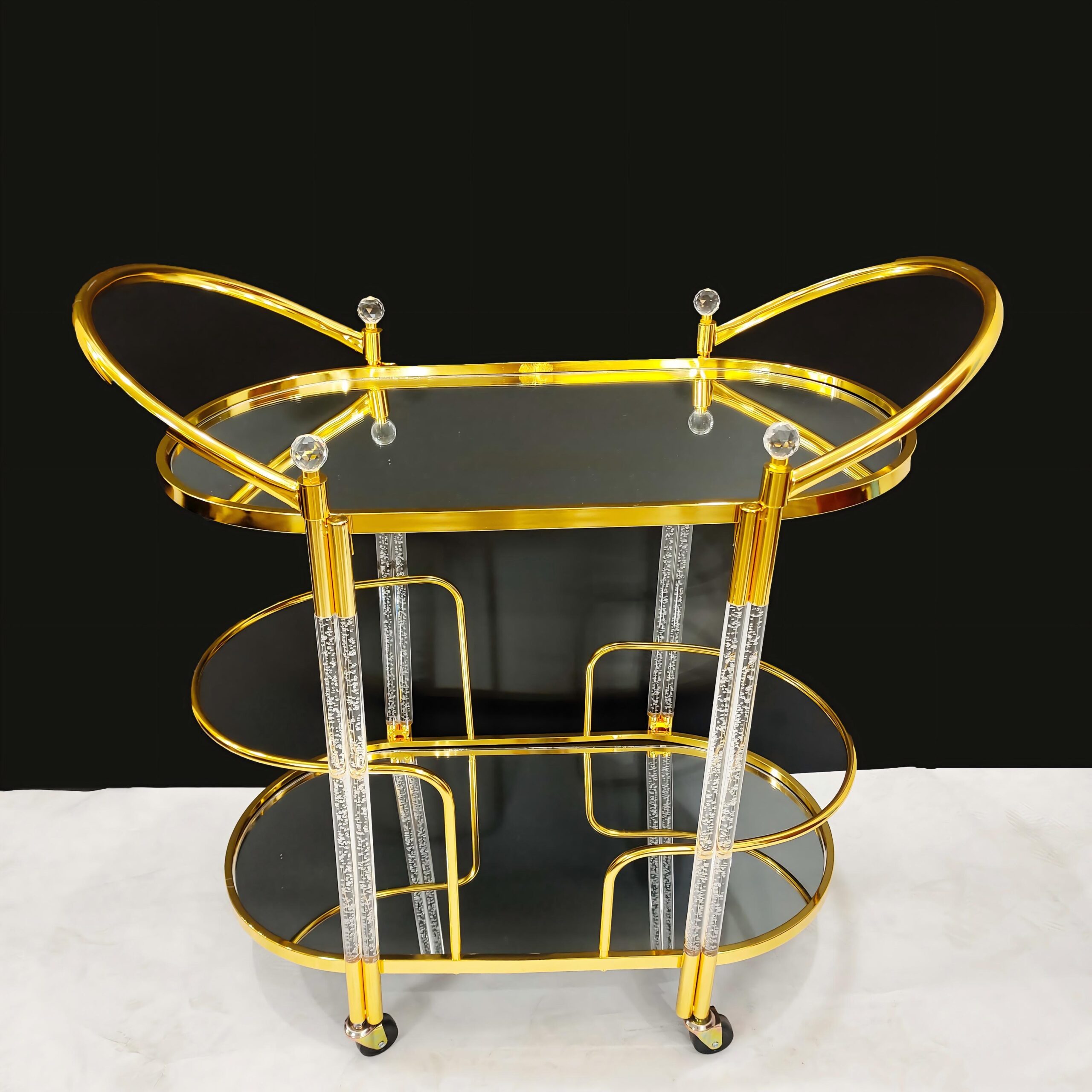• Crystal-Adorned Columns: Four sleek acrylic columns, embedded with tiny crystals, add a touch of glamour. These columns shine like Indian wedding jewelry, making the trolley a showstopper at parties.