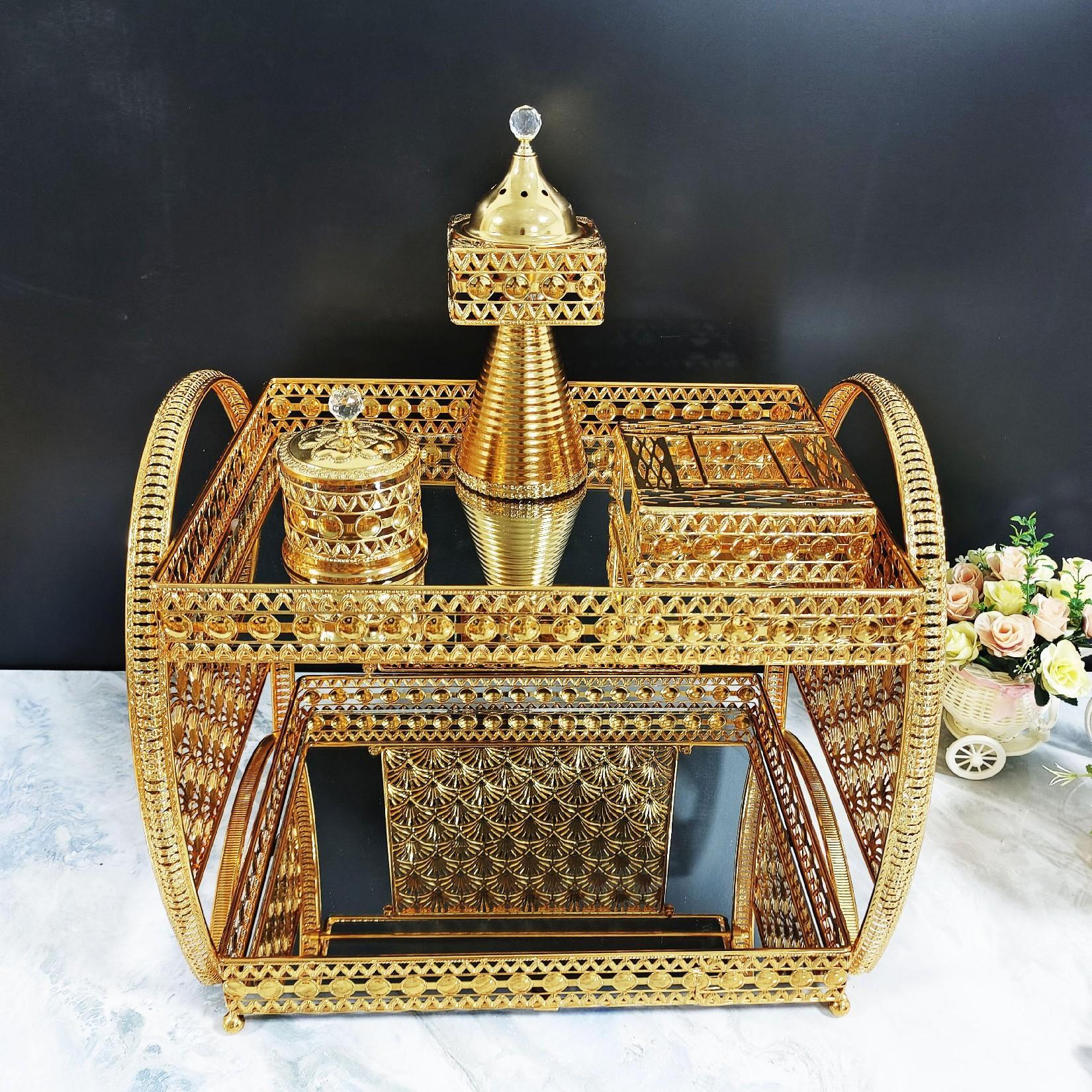 Rectangular Golden Iron Coffee Table with LED Incense Set (QBY-80265) – Elegant Storage & Sacred Glow for Indian Homes