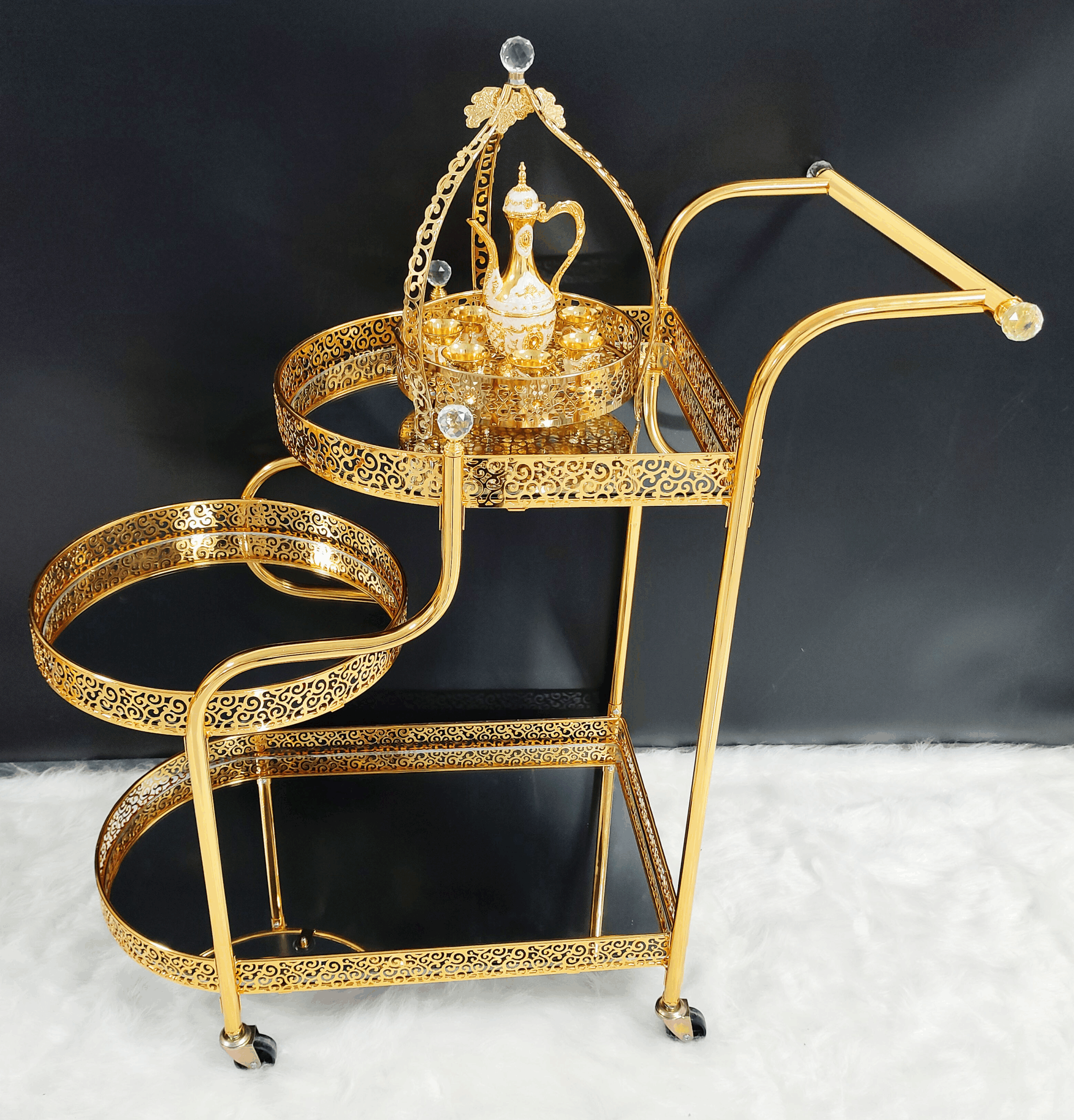 Three-Tier Spiral Serving Trolley (QBY-80238) – A Golden Masterpiece for Indian Hospitality For Indian Homes: Where Tradition Meets Functionality